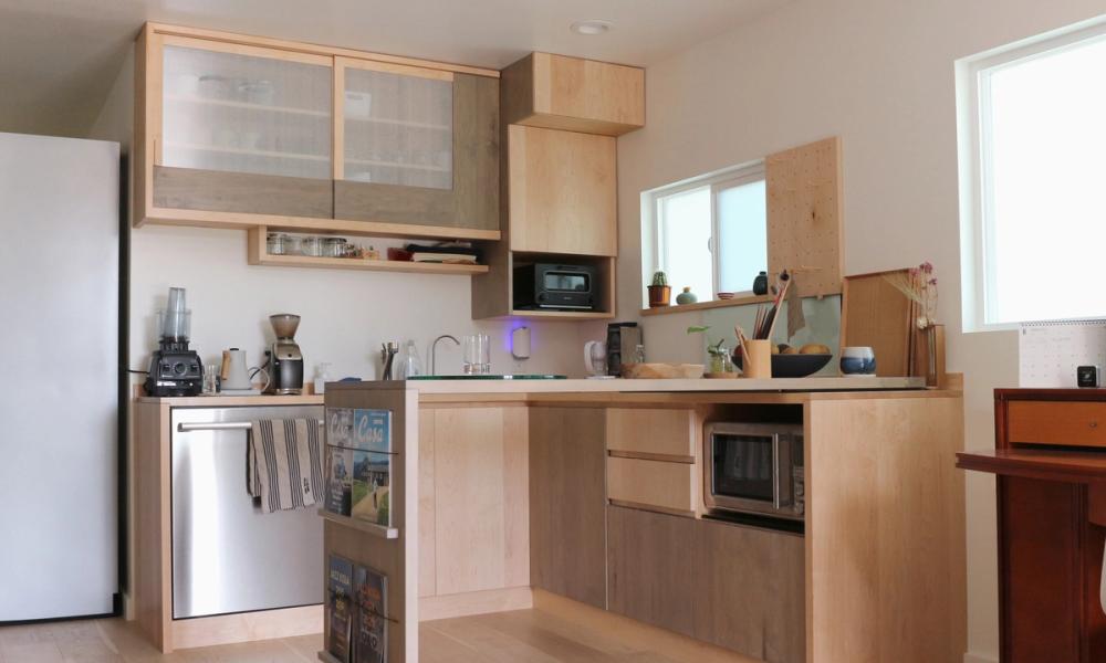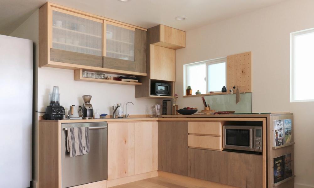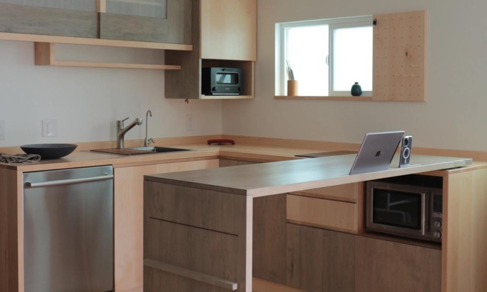 Perfect minimal kitchen with expandable working counter